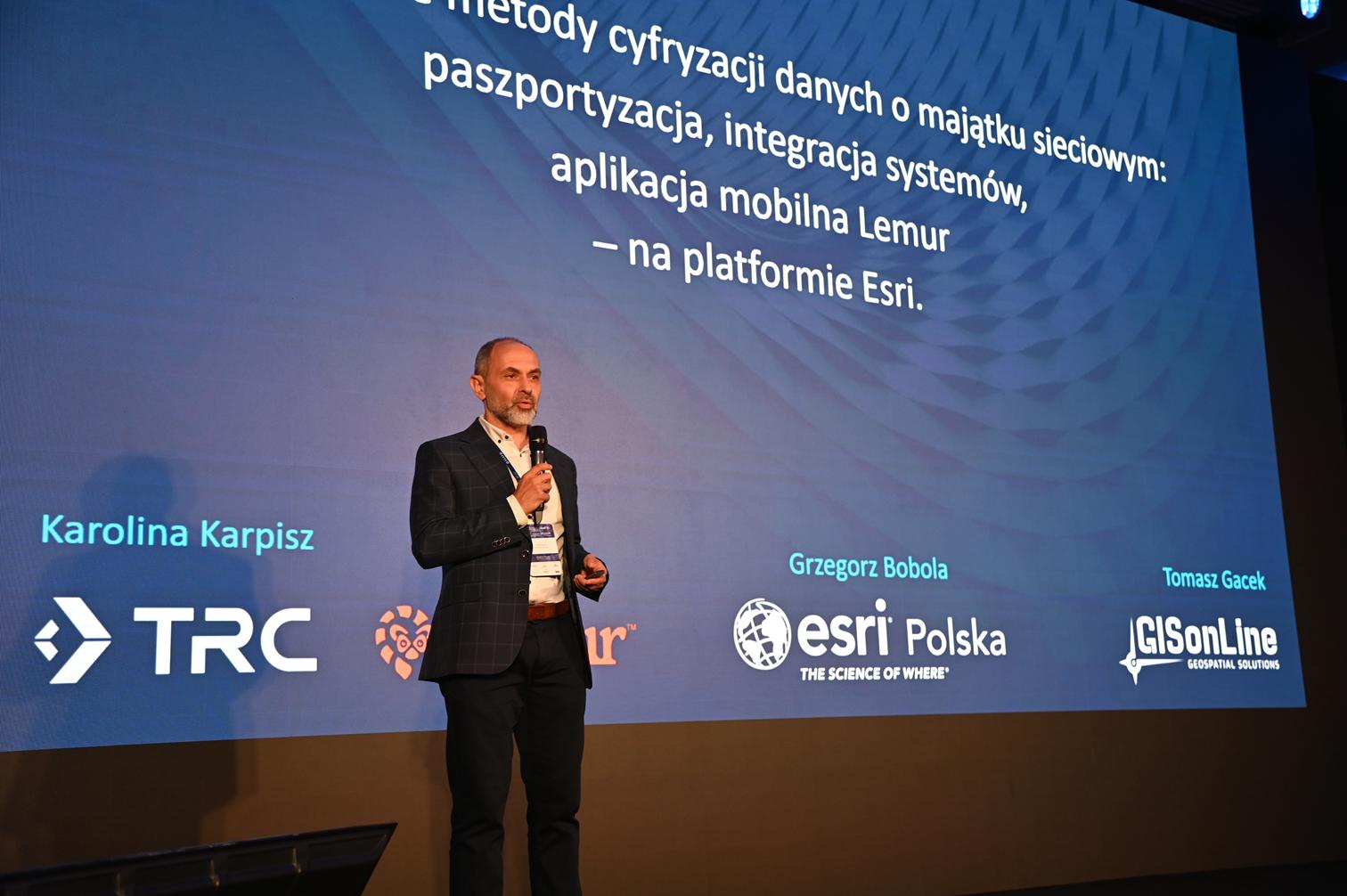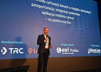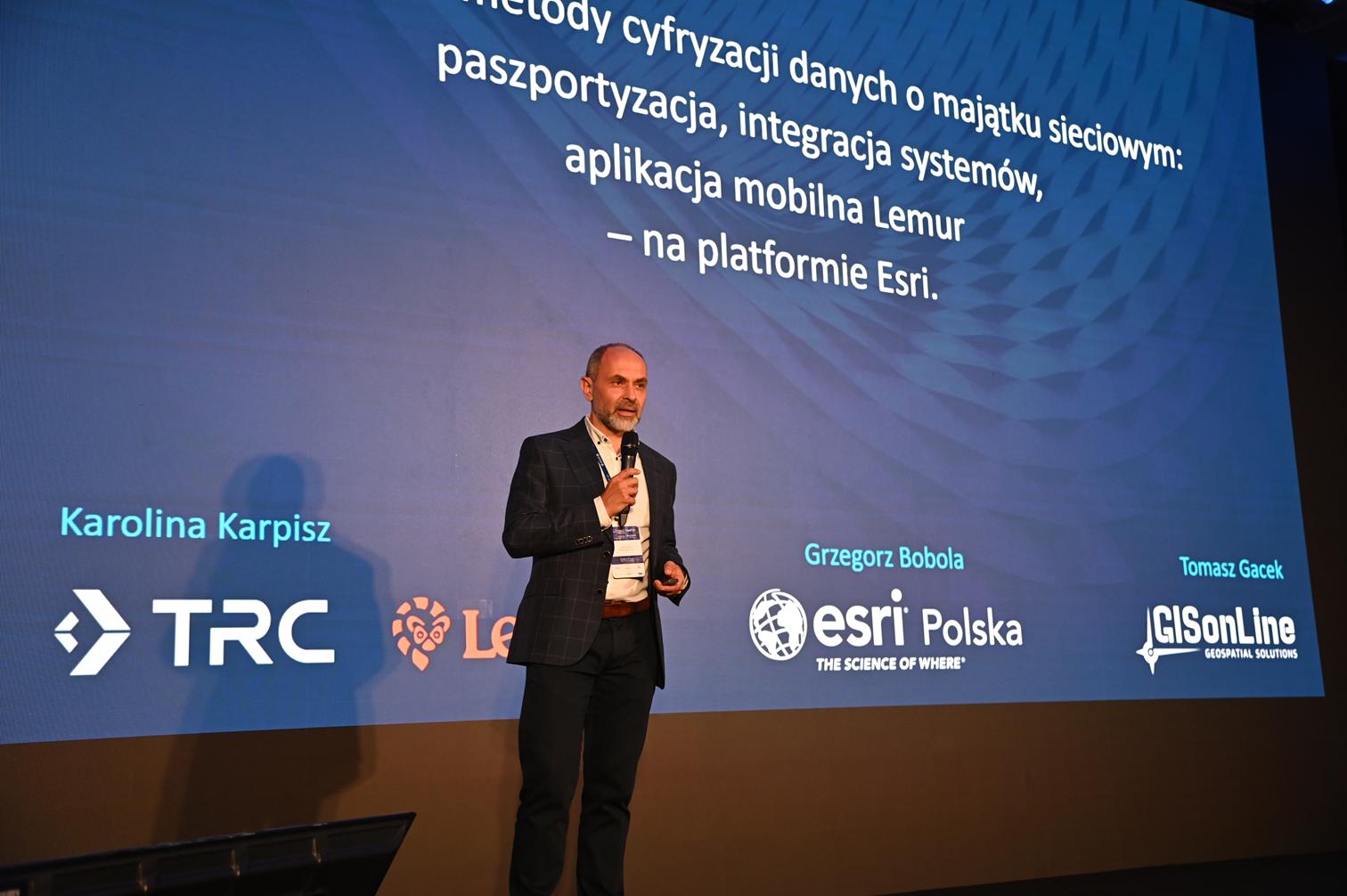 Tomasz Gacek (GISonLine Sp. z o.o.), Grzegorz Bobola (Esri Polska Sp. z o.o.),